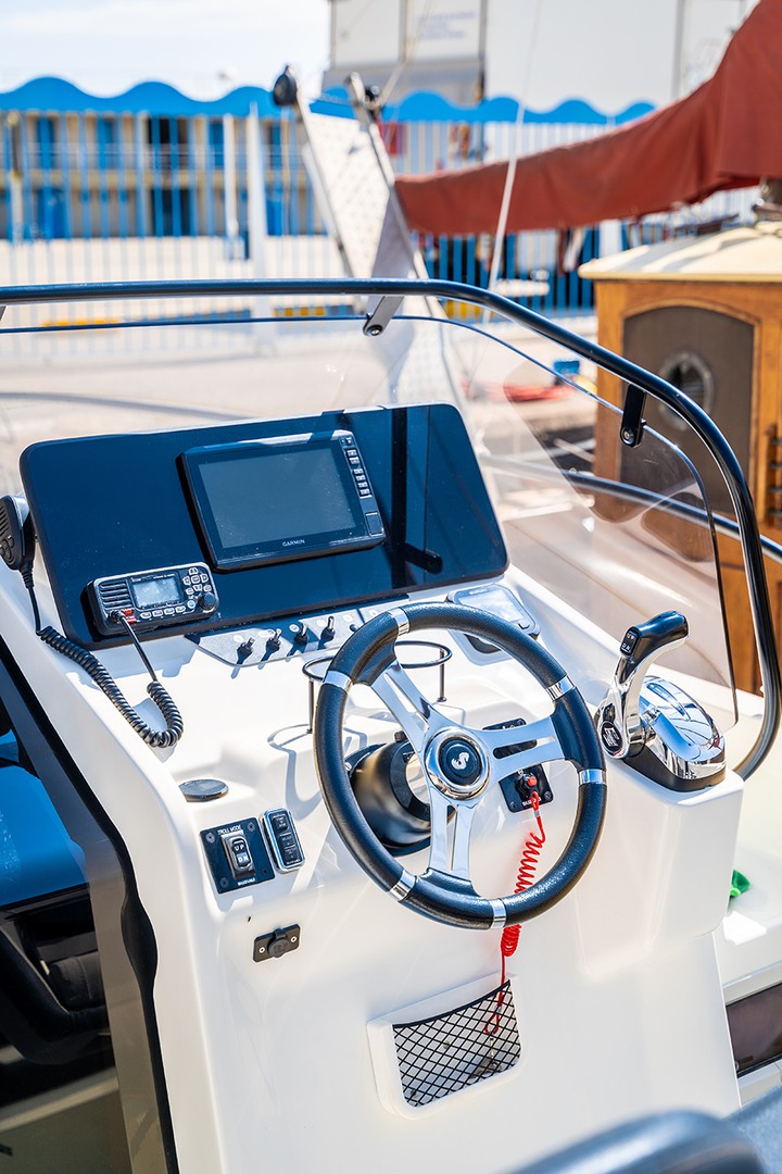 Gps, Plotter, Depth sounder, Vhf radio, Speedometer, Anchor box, Tools, Hand bearing compass, First aid kit, Navigation lights.